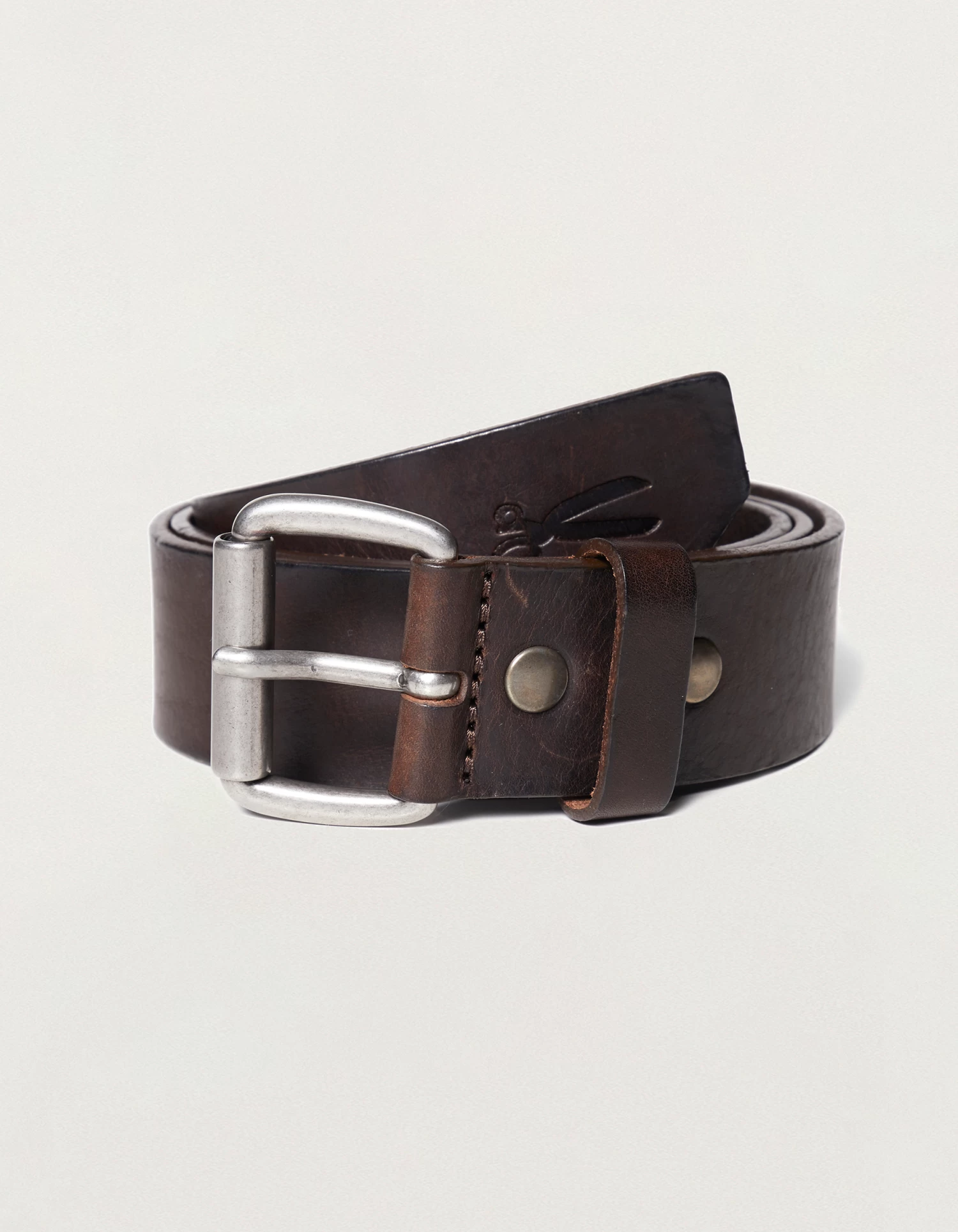 The 40MM ROLLER BELT is our classic leather belt for men. Made from premium brown tanned cow leather with a vintage-like texture, this belt has a metal buckle, and our scissor logo embossed at the end.