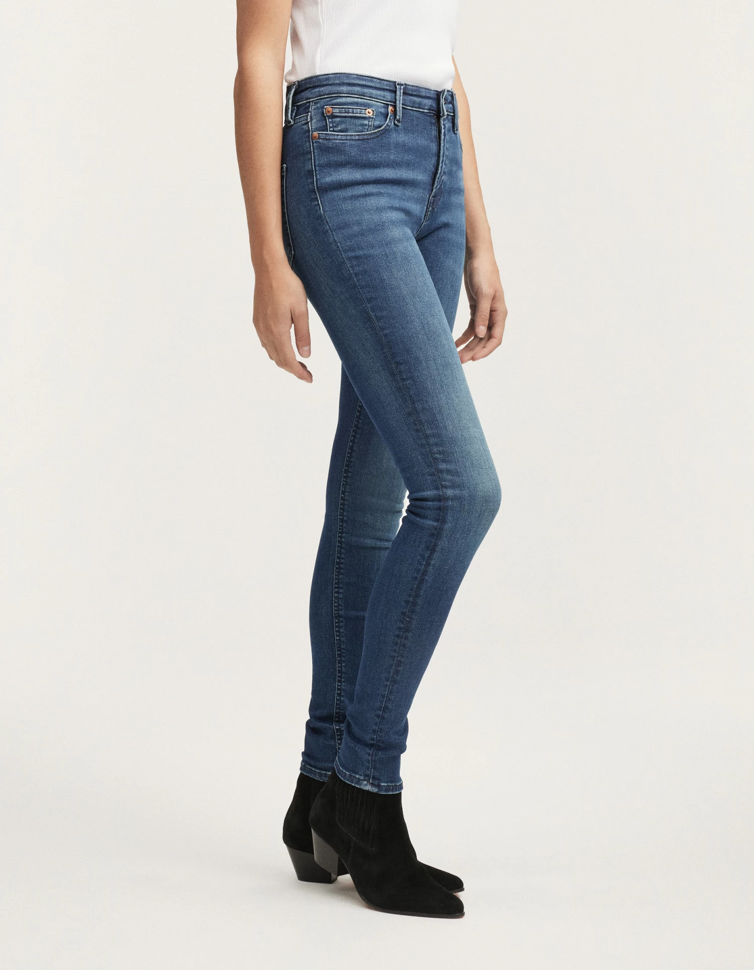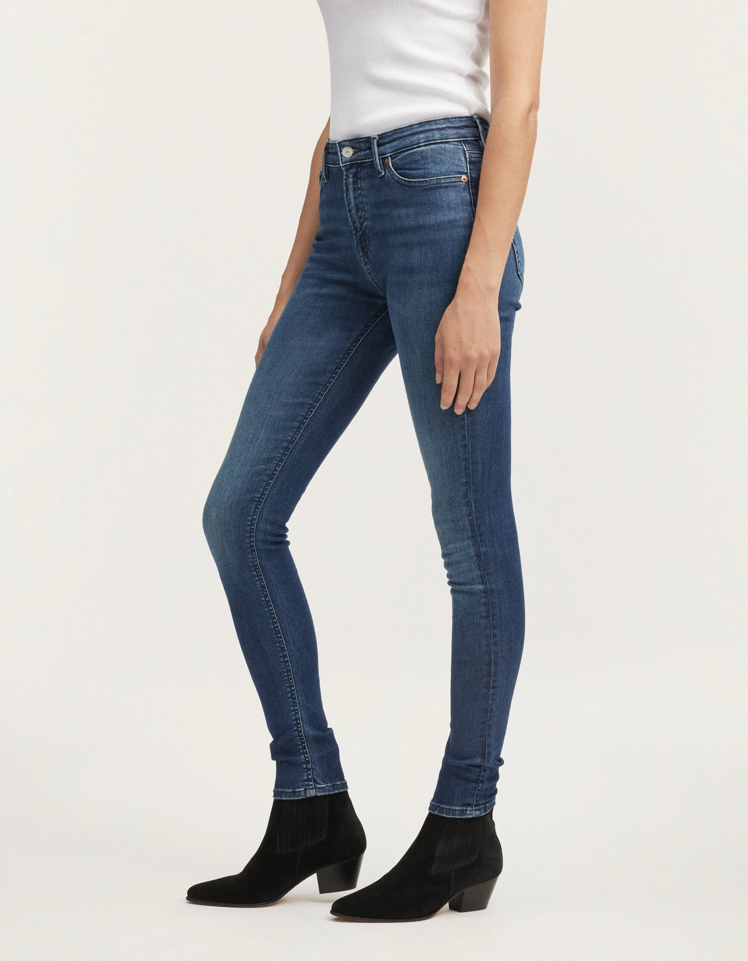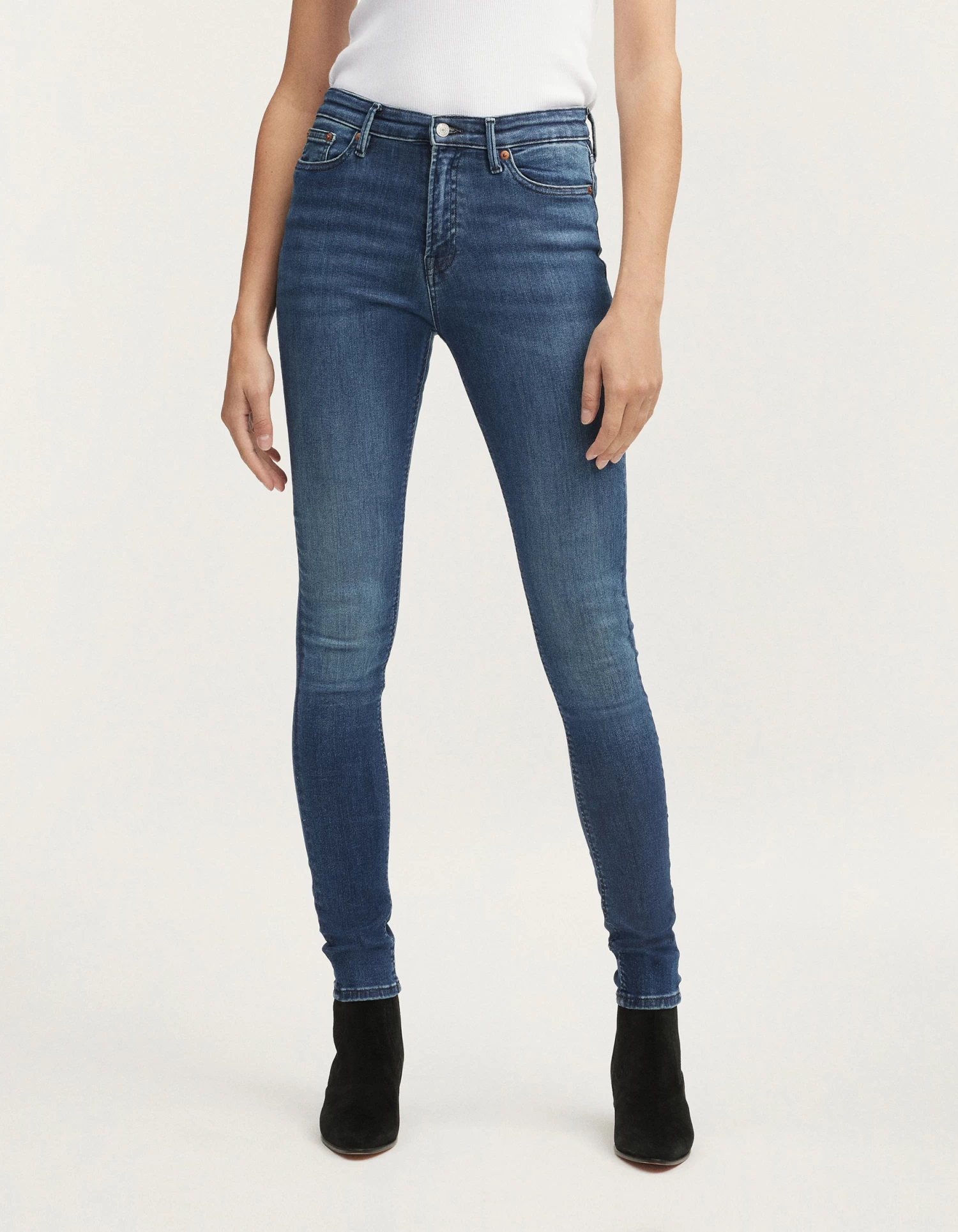 FIT: Our new high-rise skinny jean. Featuring a tight fit from the waist down to the ankle. Crafted from a stretch fabric for ultimate comfort.