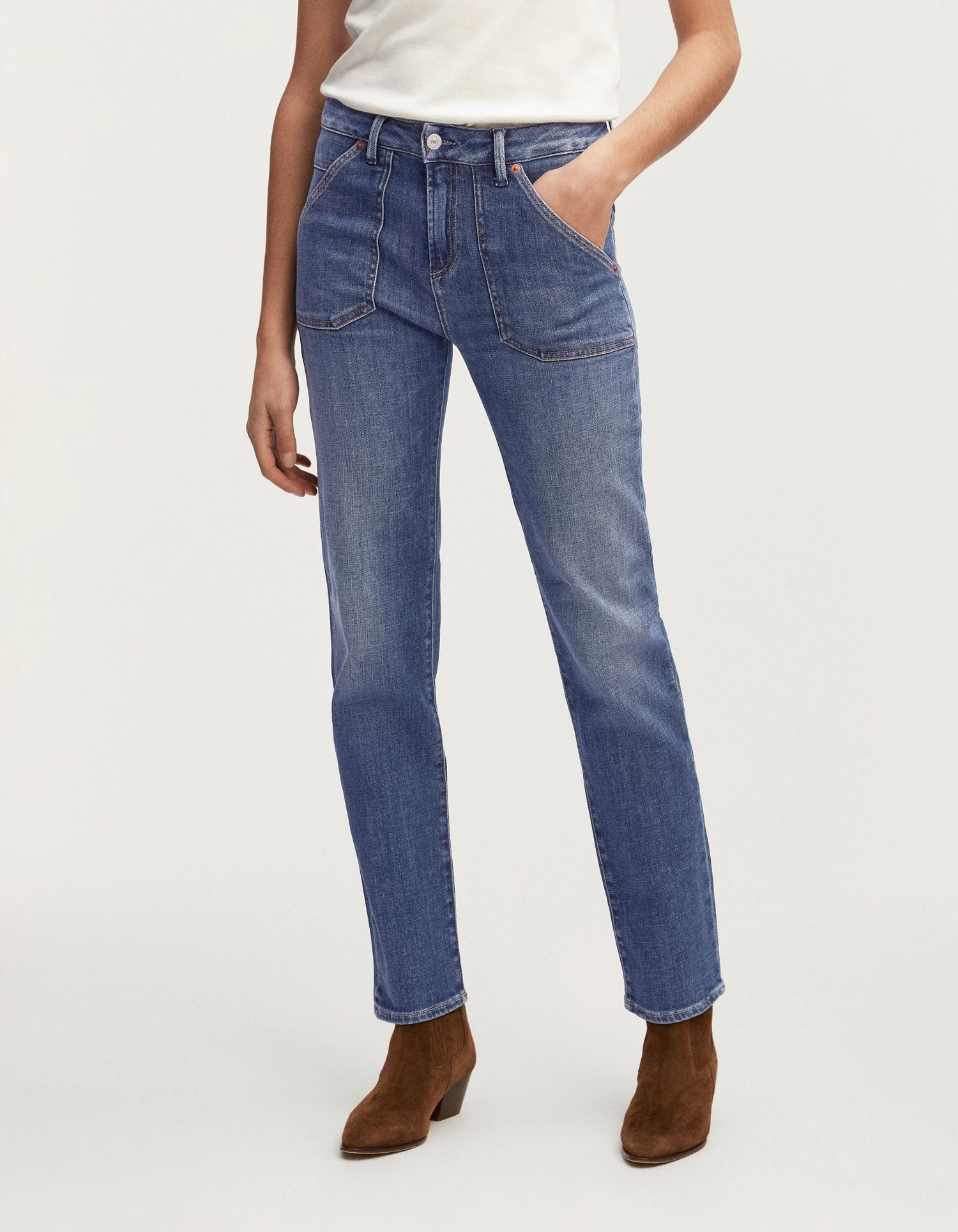 - • High-Rise, Straight-Leg Fit