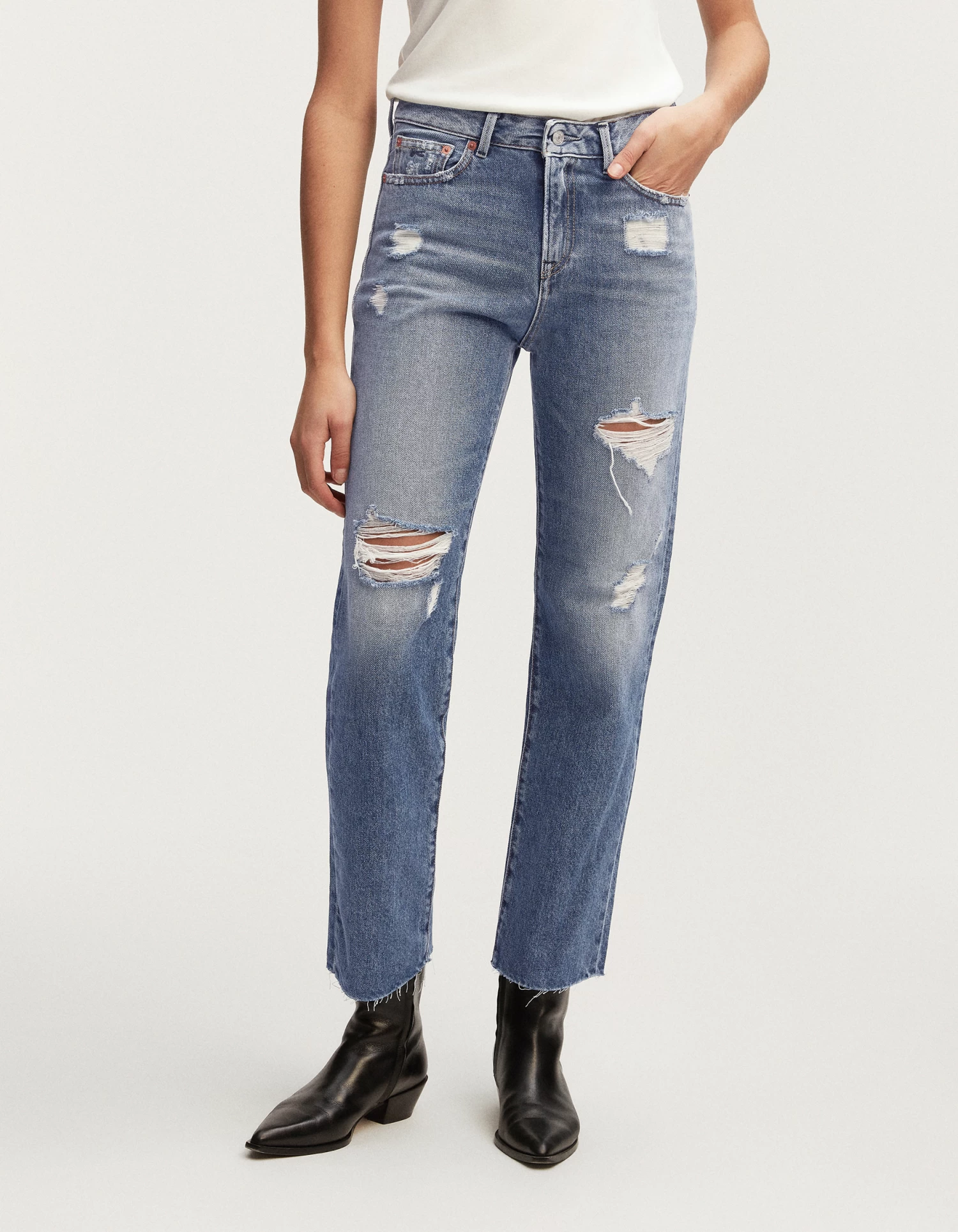 FIT: The BARDOT STRAIGHT fit is inspired by popular 60s denim styles. Featuring a slim, high-waist cut that expands into a chic straight-leg fit from the thigh down to the ankle.
