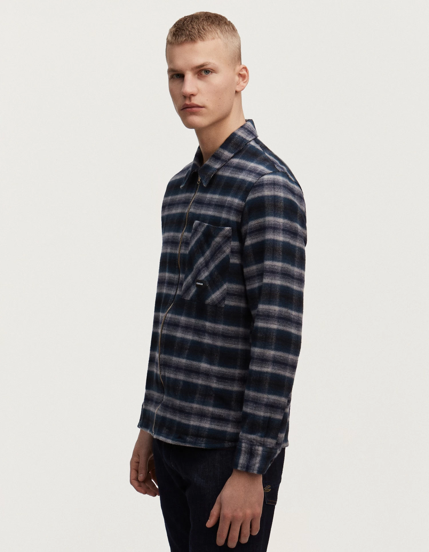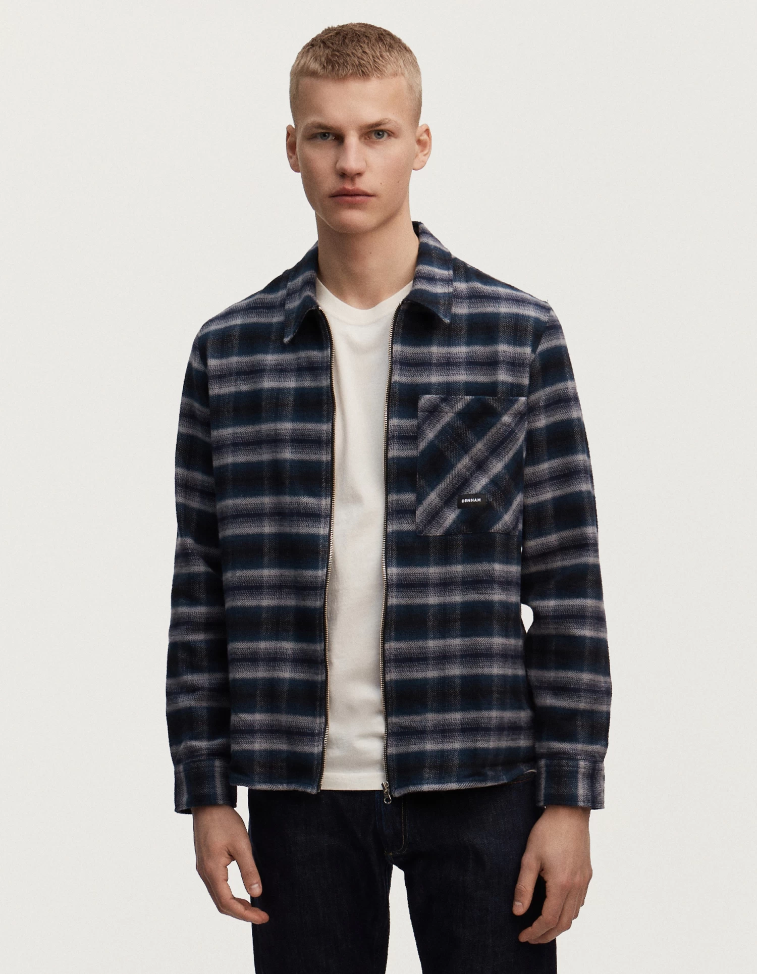 The BROOK ZIP OVERSHIRT is a seasonal style for men. Made from our premium tri-coloured cotton flannel with a soft-hand touch, this overshirt has a zippered closure and a single chest pocket with our application patch logo.