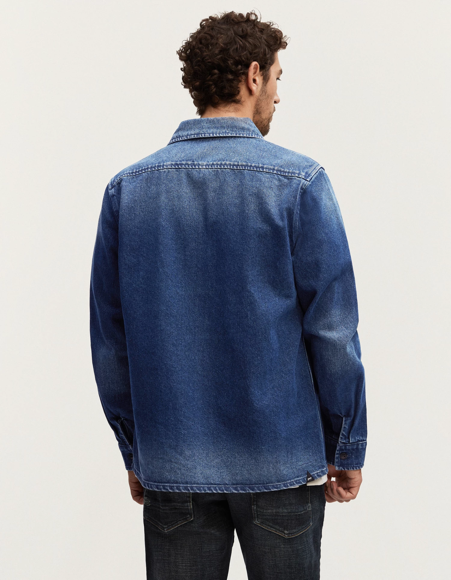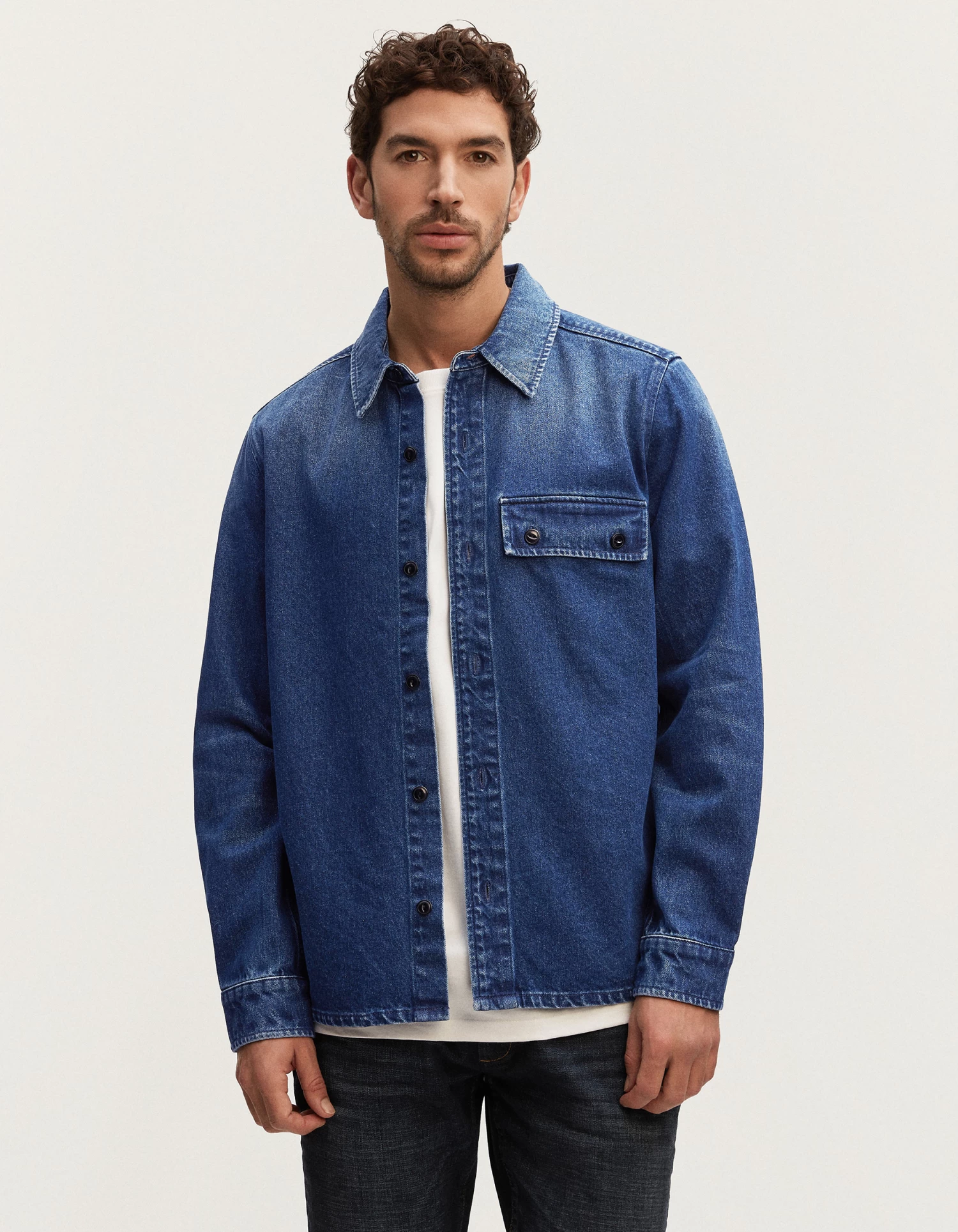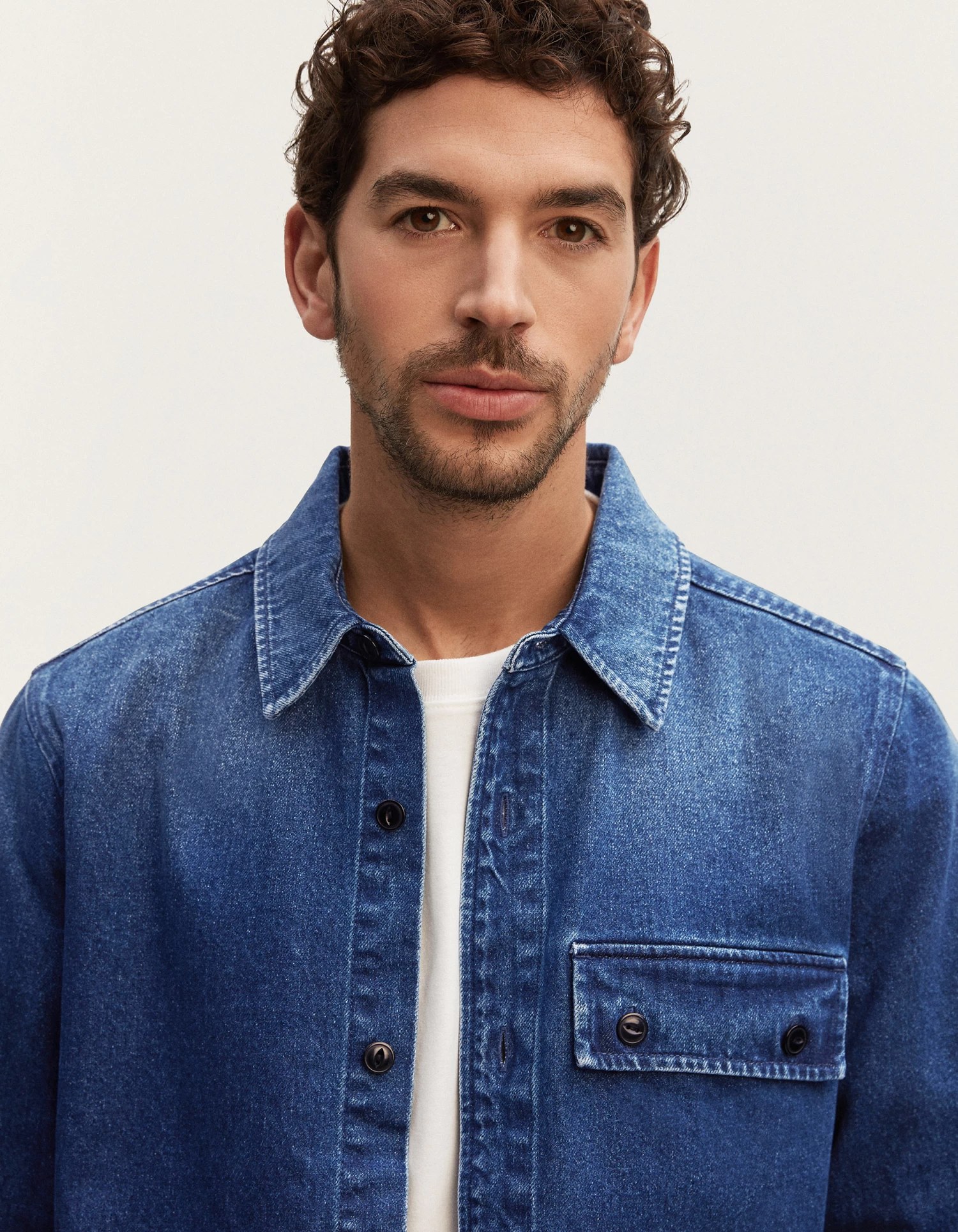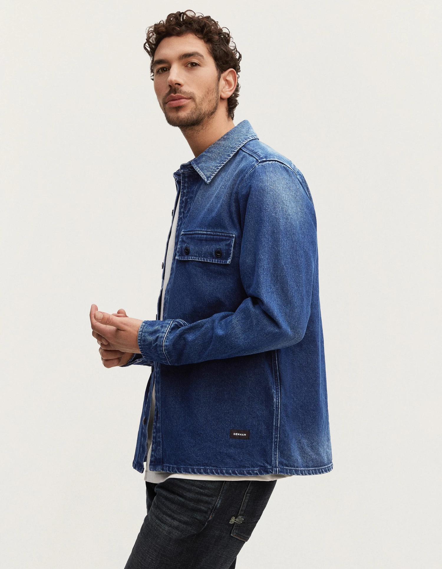 The BURTON FLAP OVERSHIRT is a seasonal, regular-fit overshirt for men, inspired by our classic BURTON shirt. This style is cut from classic rigid denim and features minimal detailing, with a single flap chest pocket and our square appliqué logo by the hem.