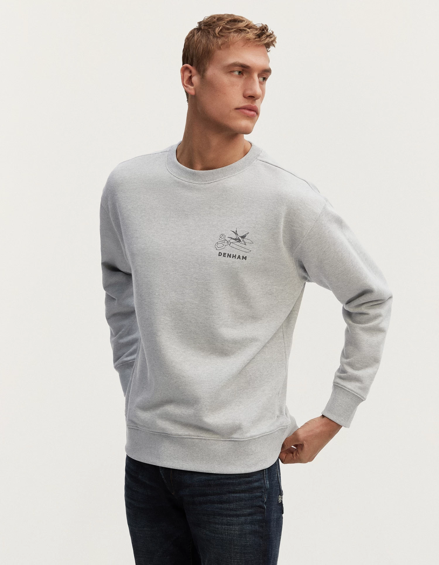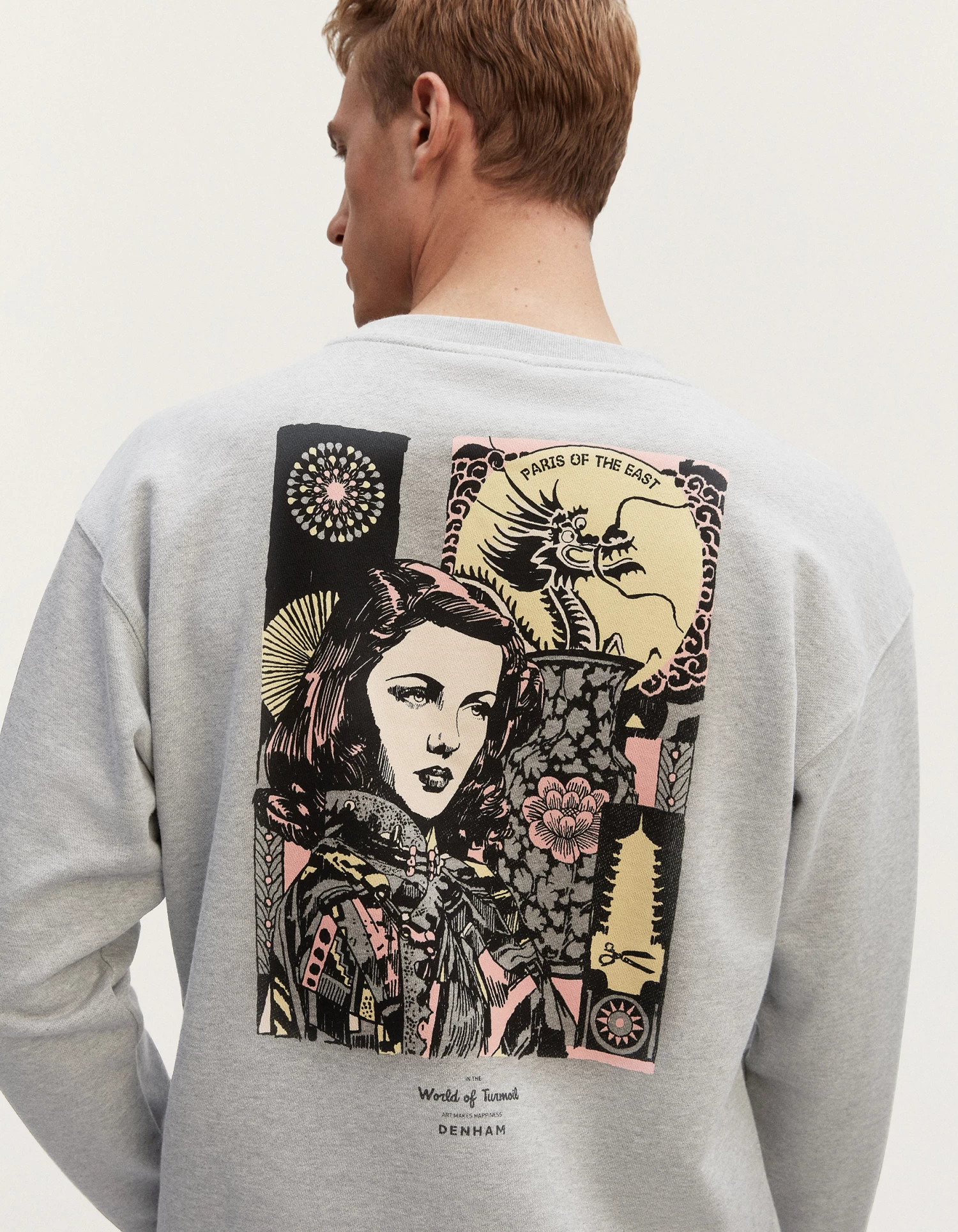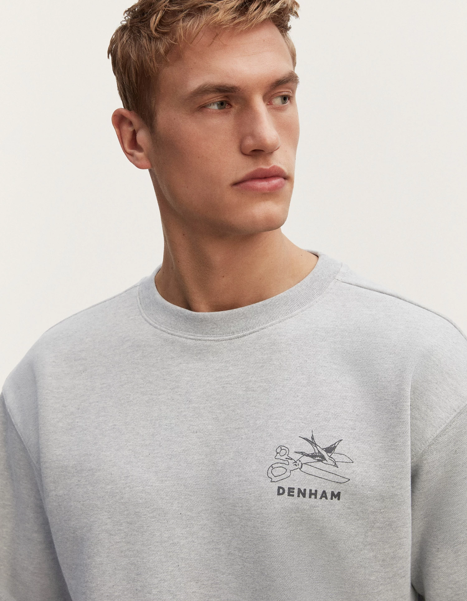 The DXT FATALE SWEATSHIRT is part of our latest House Guest Artist series with artist and tattooist Rutger Termohlen from World of Turmoil. This limited-edition sweatshirt is made from premium brushed cotton. The back of this boxy-fit sweatshirt features a large print inspired by traditional tattoo icons and our DENHAM world. The front bears a small print of the DENHAM x Turmoil world, our iconic scissor logo intertwined with a classic flash tattoo icon, the swallow.