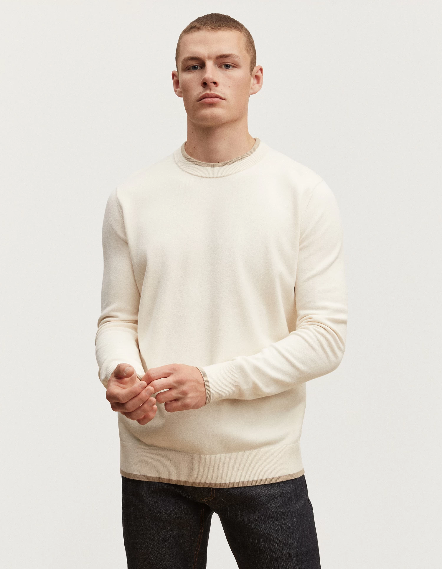 The EATON CREW SWEATER is a classic sweater crafted from super soft, compact knit ECO-VERO viscose. Featuring a crew neck and stripe details at the collar, cuffs and hem.