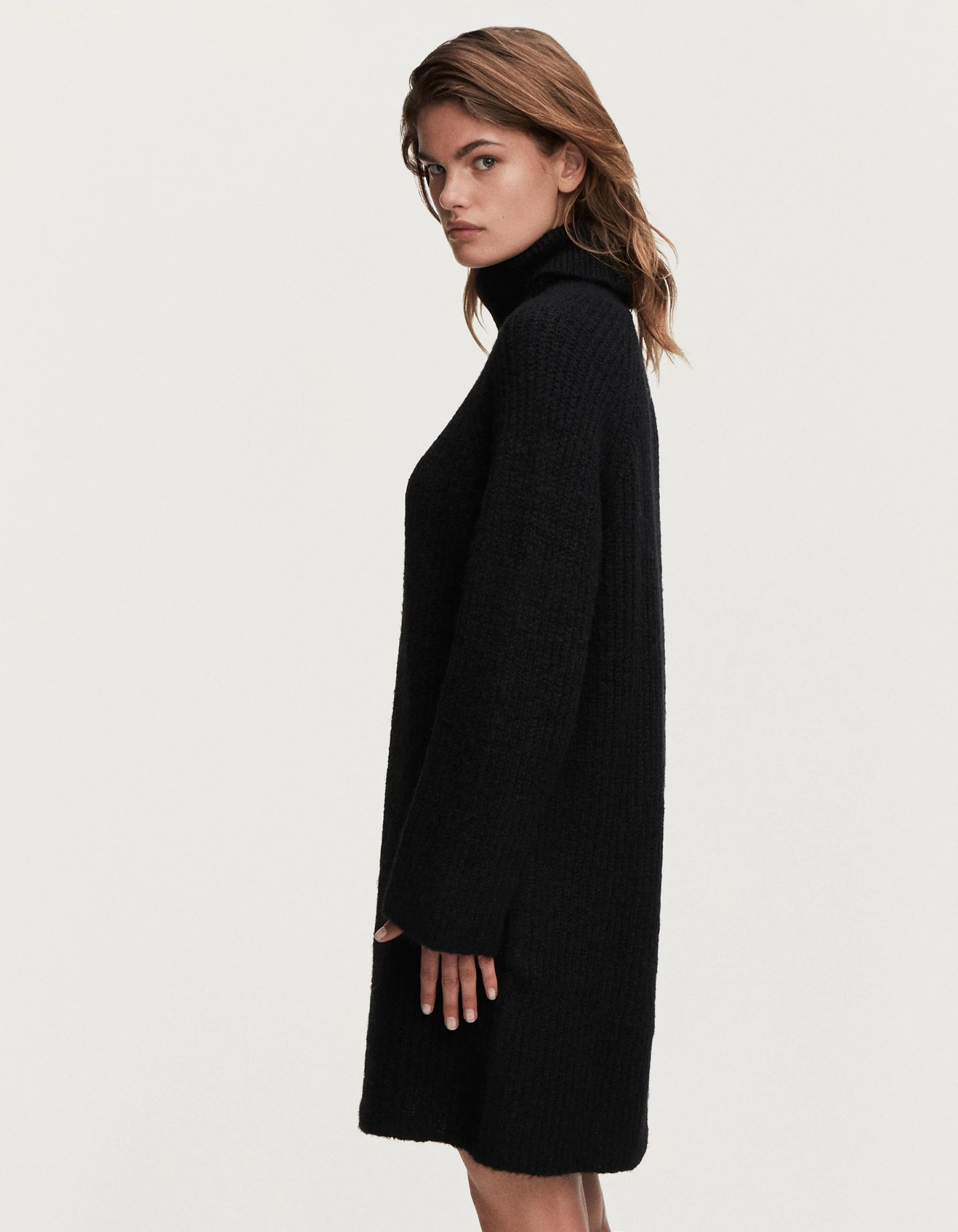 The ELLE DRESS is our chunky knitted dress for women. Made from a premium chunky alpaca blend stretch yarn, this regular-fit sweater dress features a thick turtle neck. Ideal for the colder months, pair with tights and chunky knee-high boots for the fall.