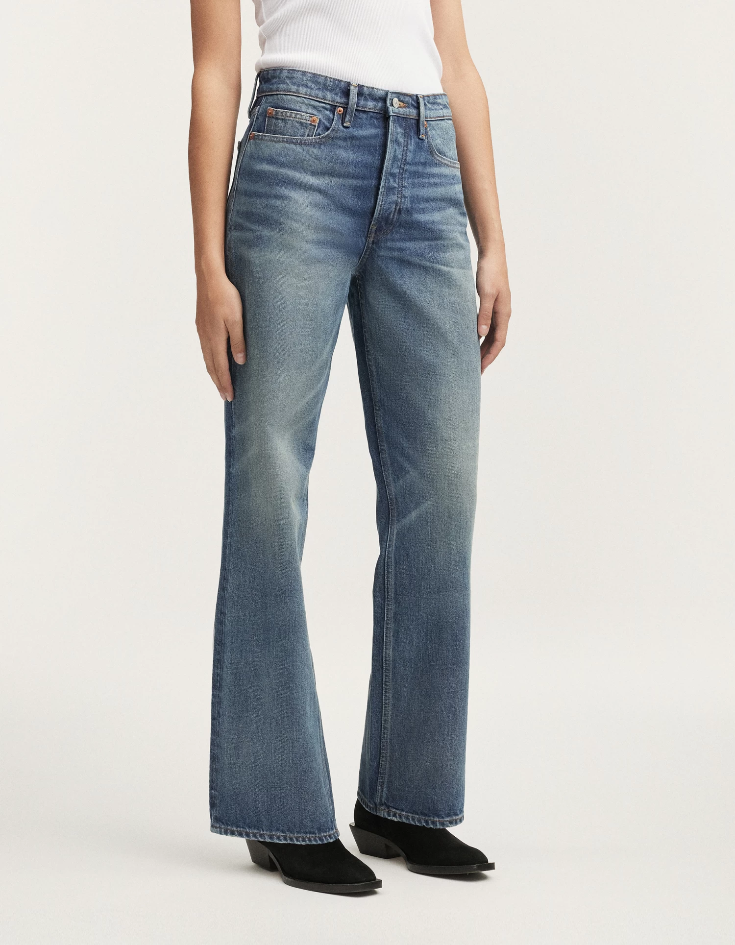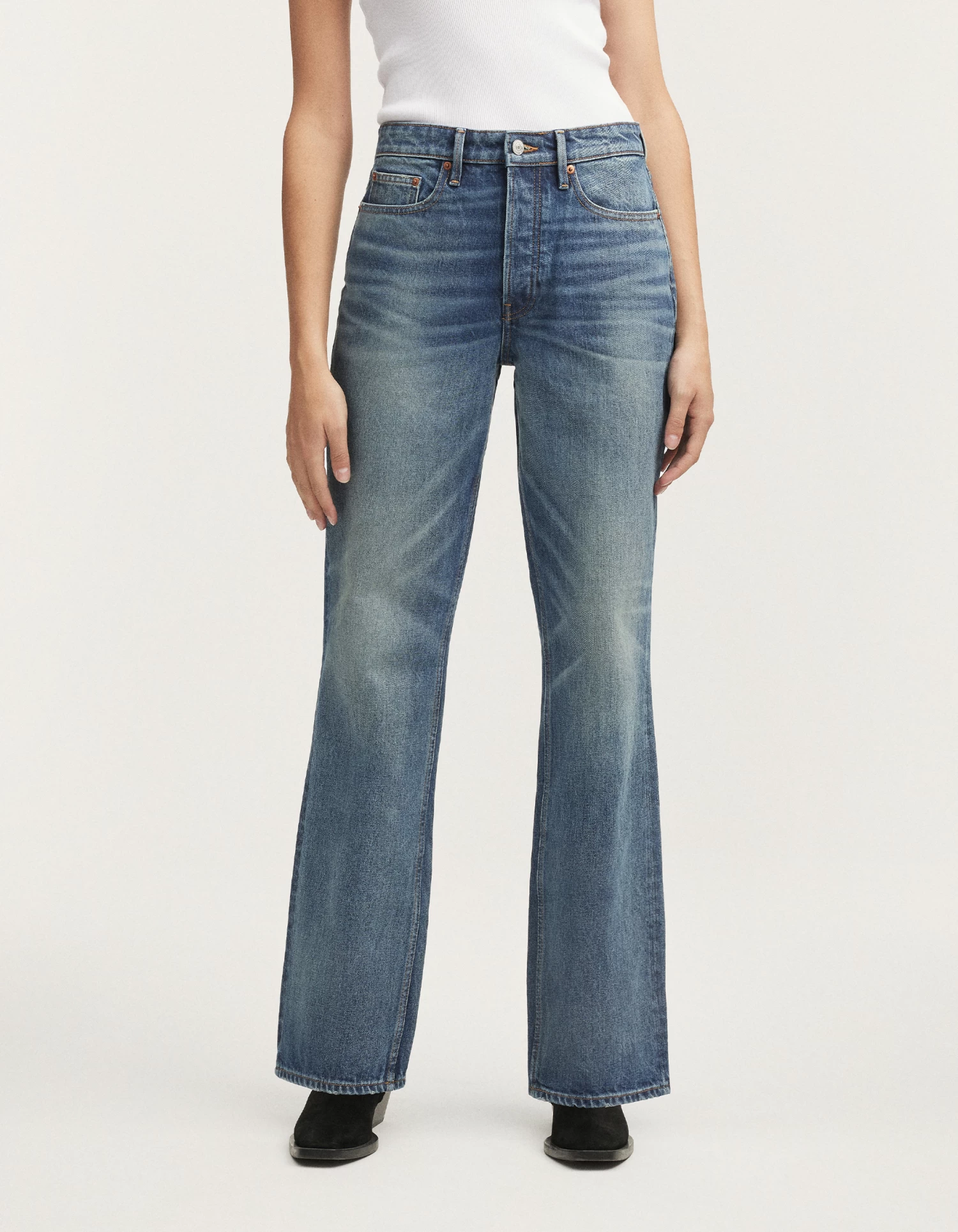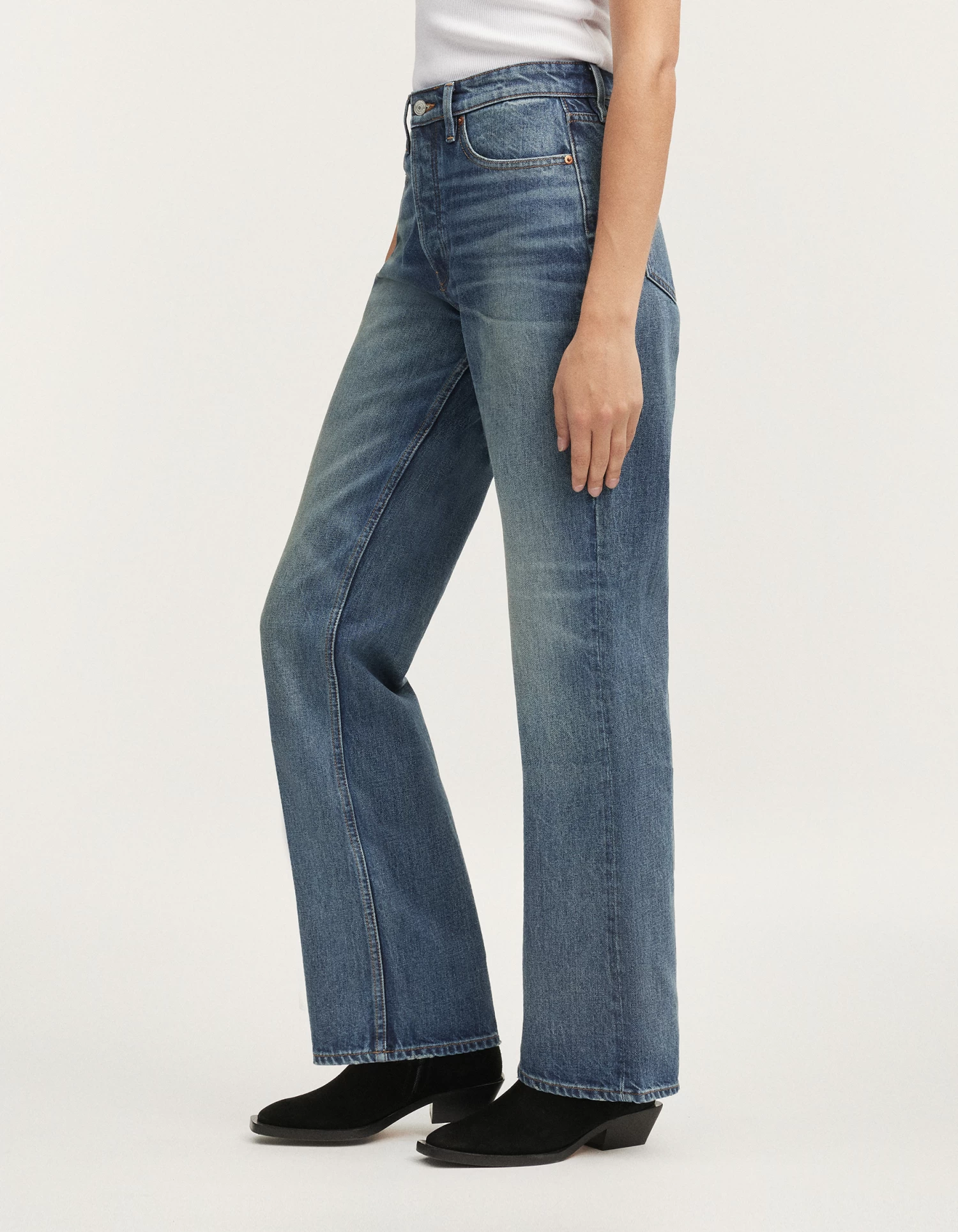 FIT: Our new loose-fit jean. Featuring a high-rise waist and a relaxed silhouette that expands into a wide leg. Crafted from rigid fabric that relaxes with wear.
