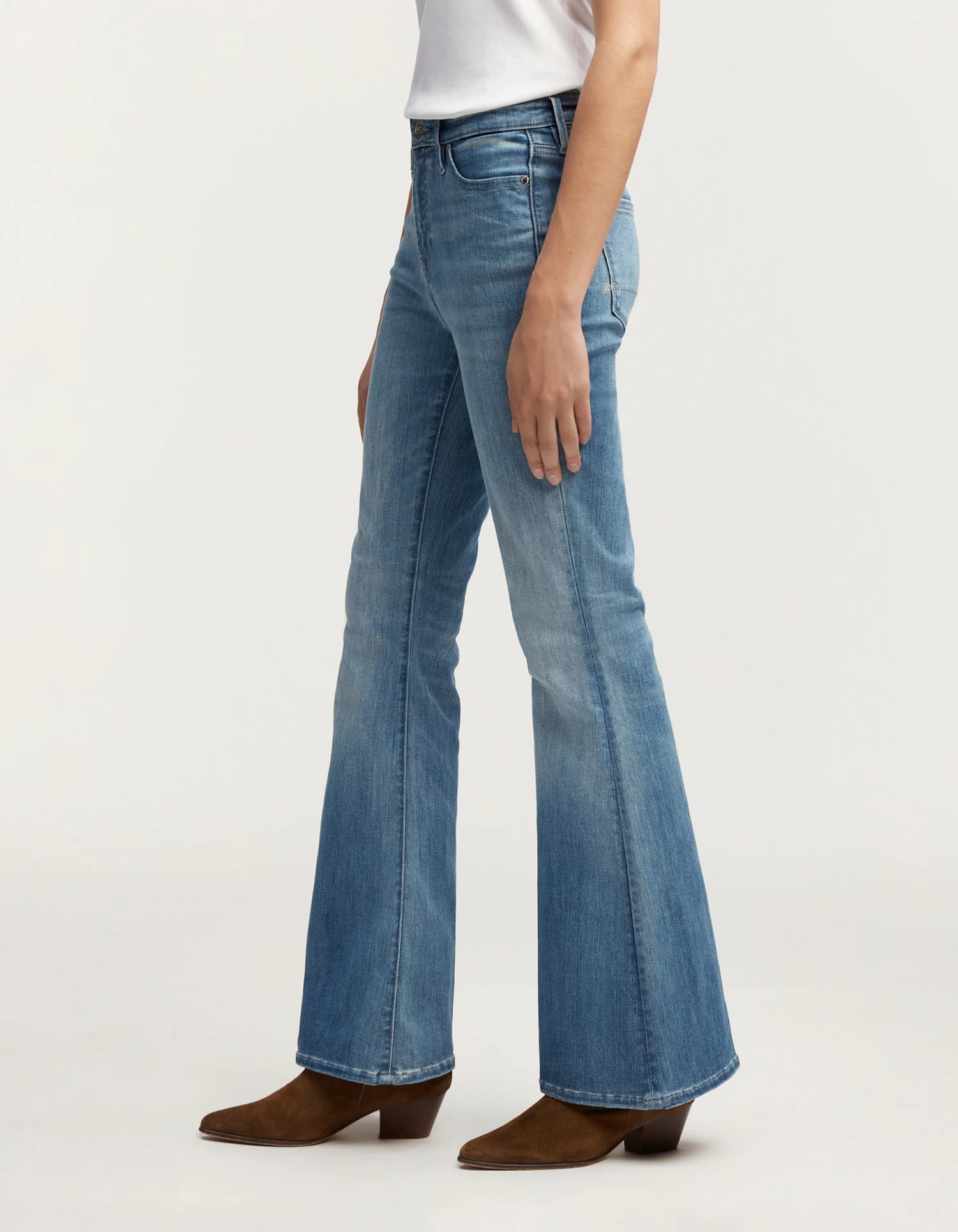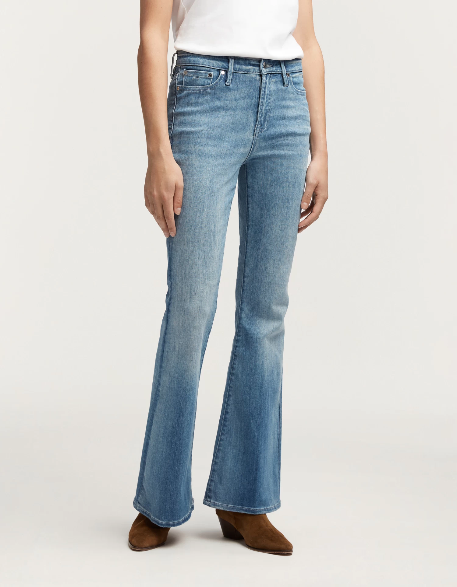 FIT: Our iconic flare fit, the JANE, features a high-rise cut at the waist, with a tight fit at the hips and thighs before widening out into a flare at the knee.