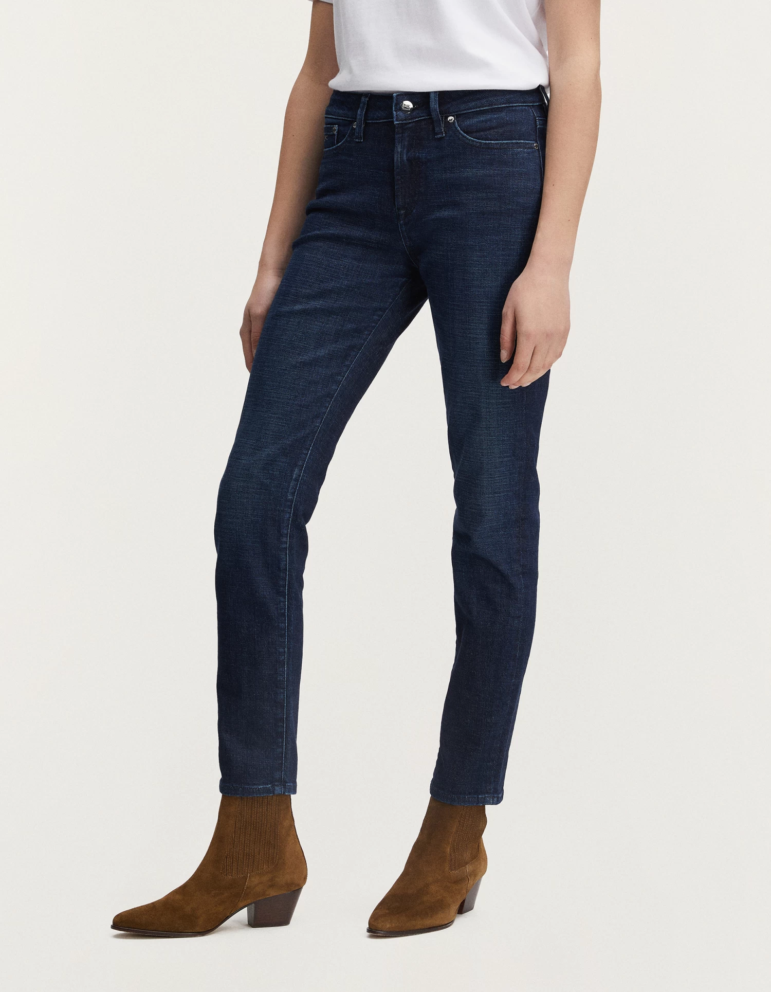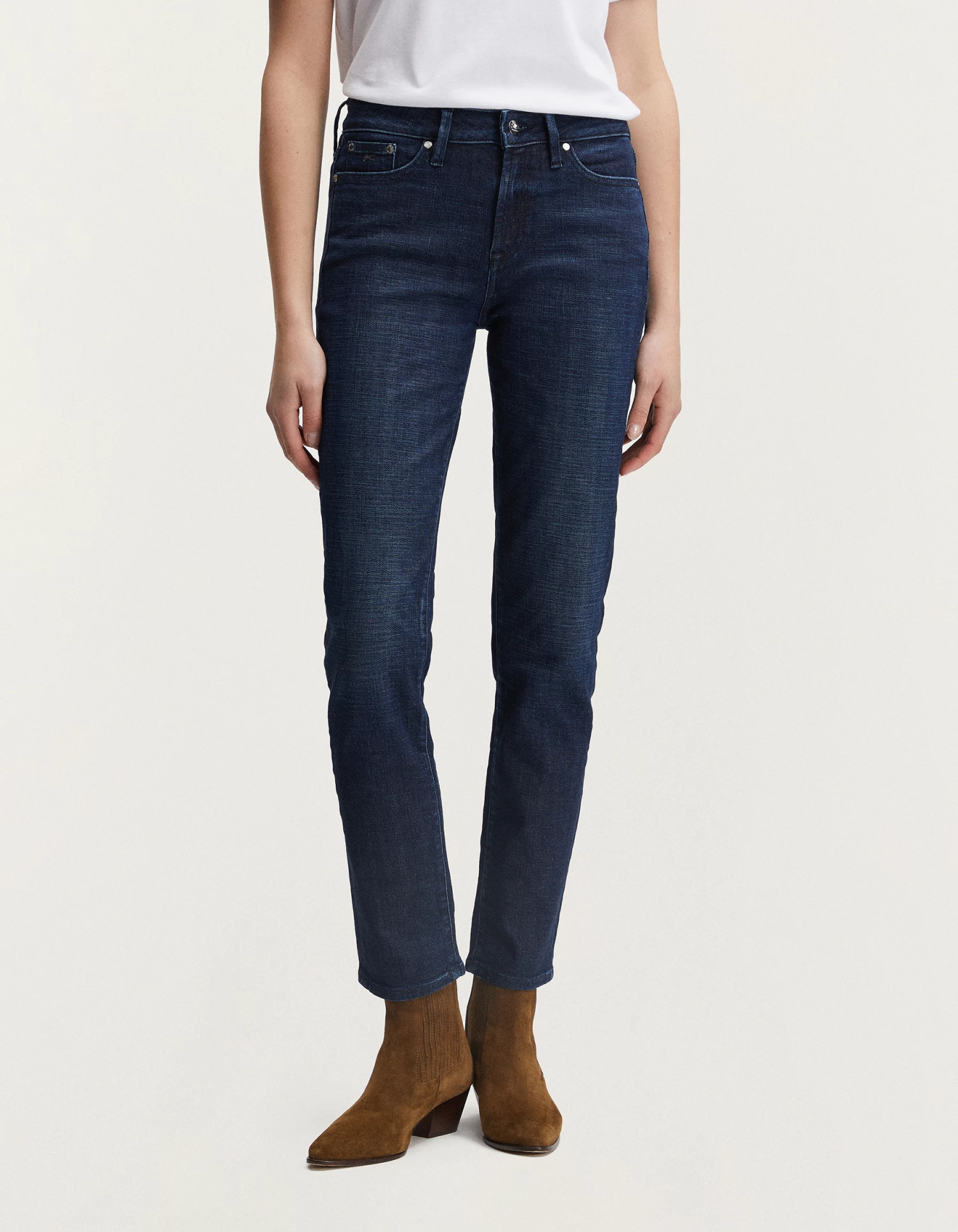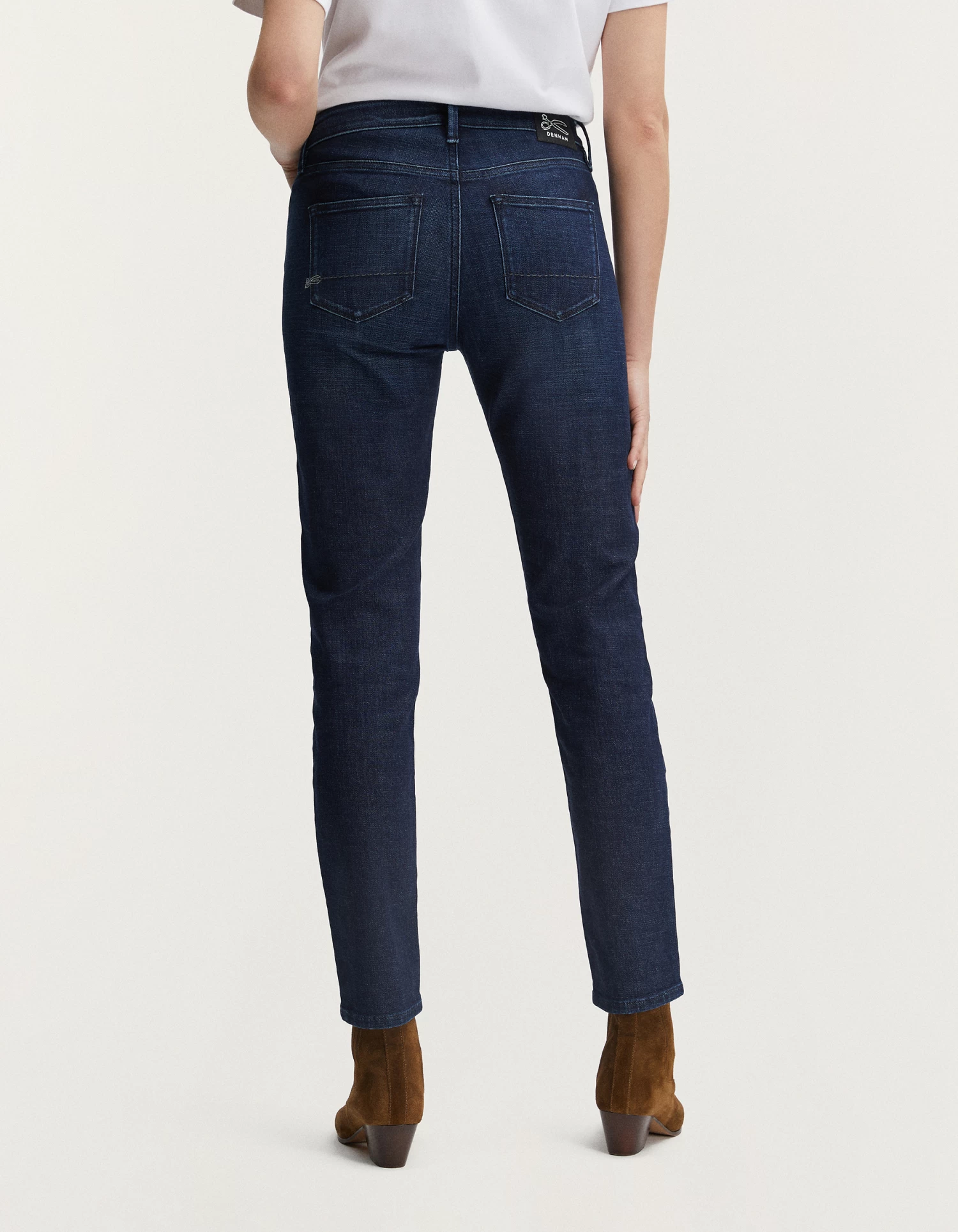 These JOLIE Jeans are cut from vintage 3 by 1, crosshatch indigo denim with comfort stretch. This style features a dark-aged wash with a stonewashed effect with a soft worn-in finish.