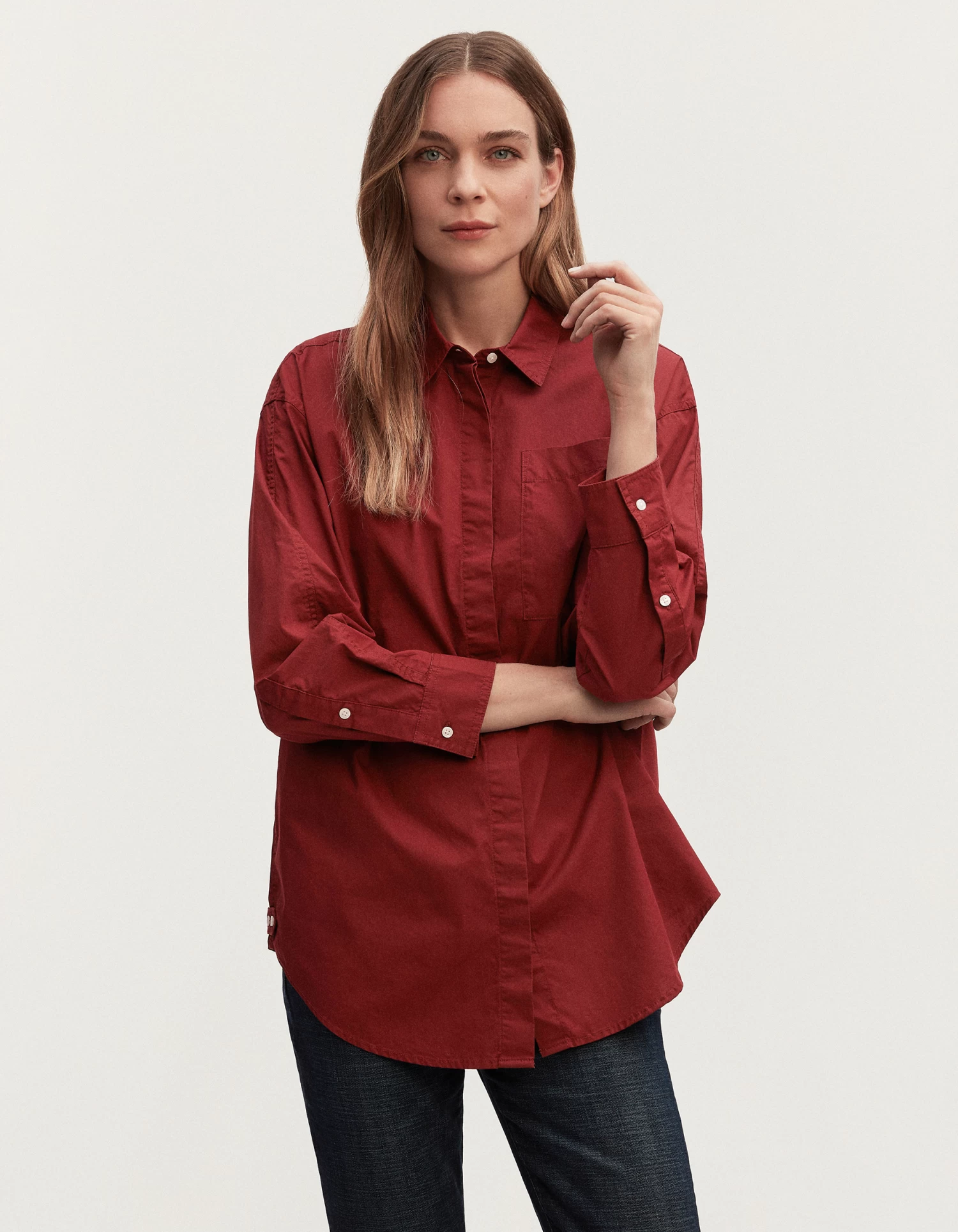 The OLIVIA 1 POCKET SHIRT is our perfect, slightly oversized shirt for women. Cut from classic cotton poplin, this shirt features one large pocket on the chest and is available in our seasonal colours.