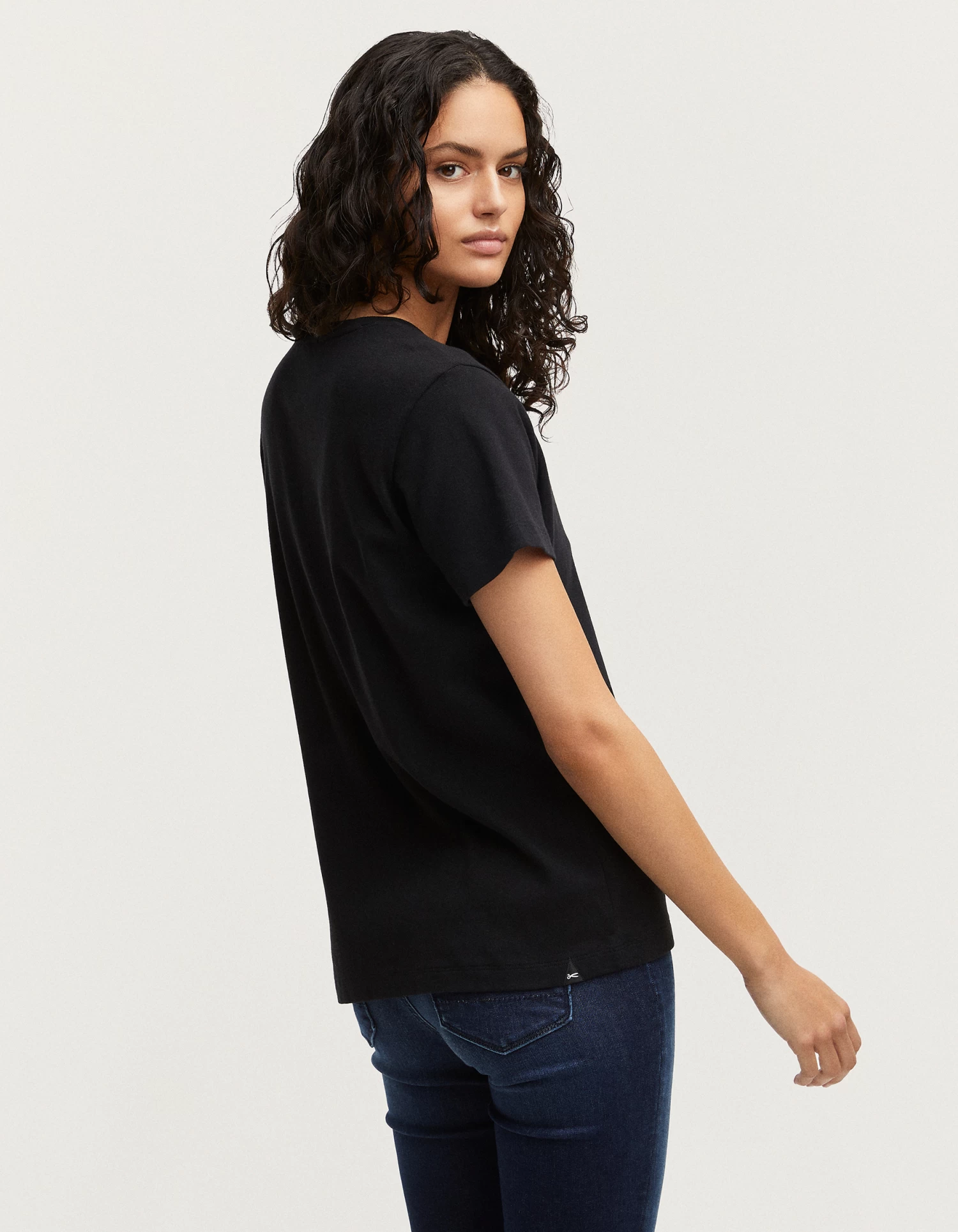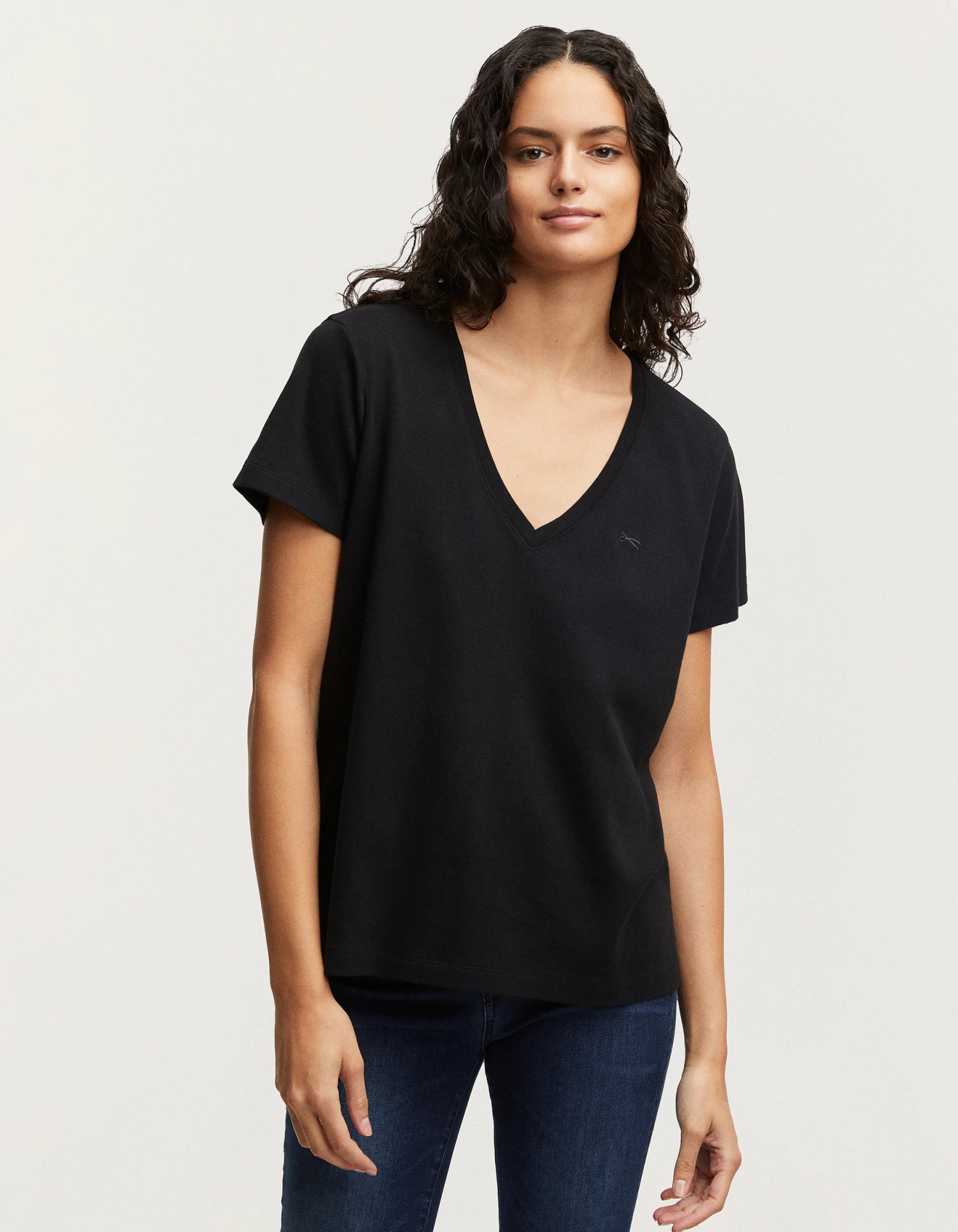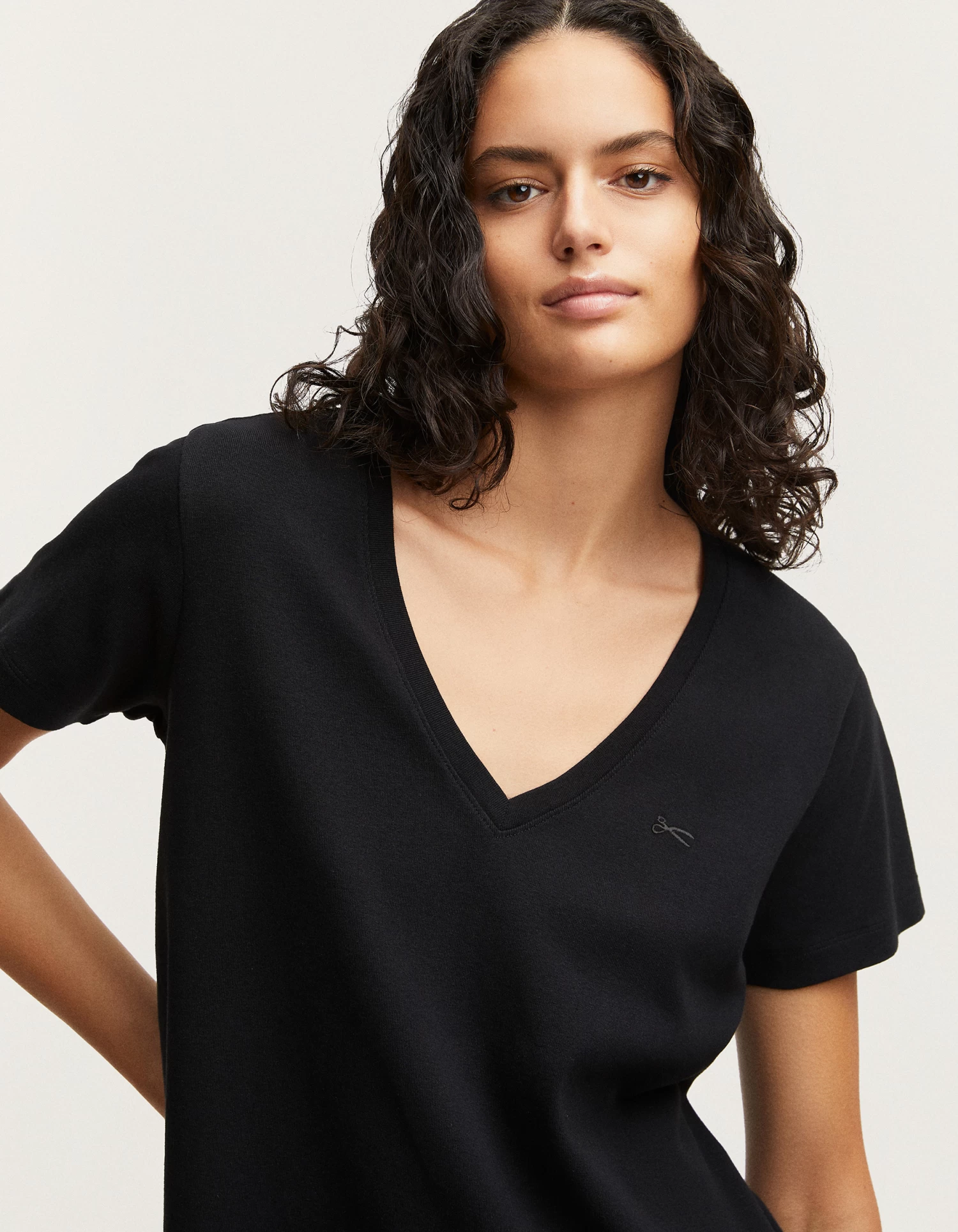 The RAMONA is our new classic, regular-fit t-shirt for women. Made from premium 190g rib cotton jersey, the fine ribbed texture of this essential tee is designed to offer superior comfort and fit. With our iconic scissor logo embroidery on the chest and a ribbed v-neck.