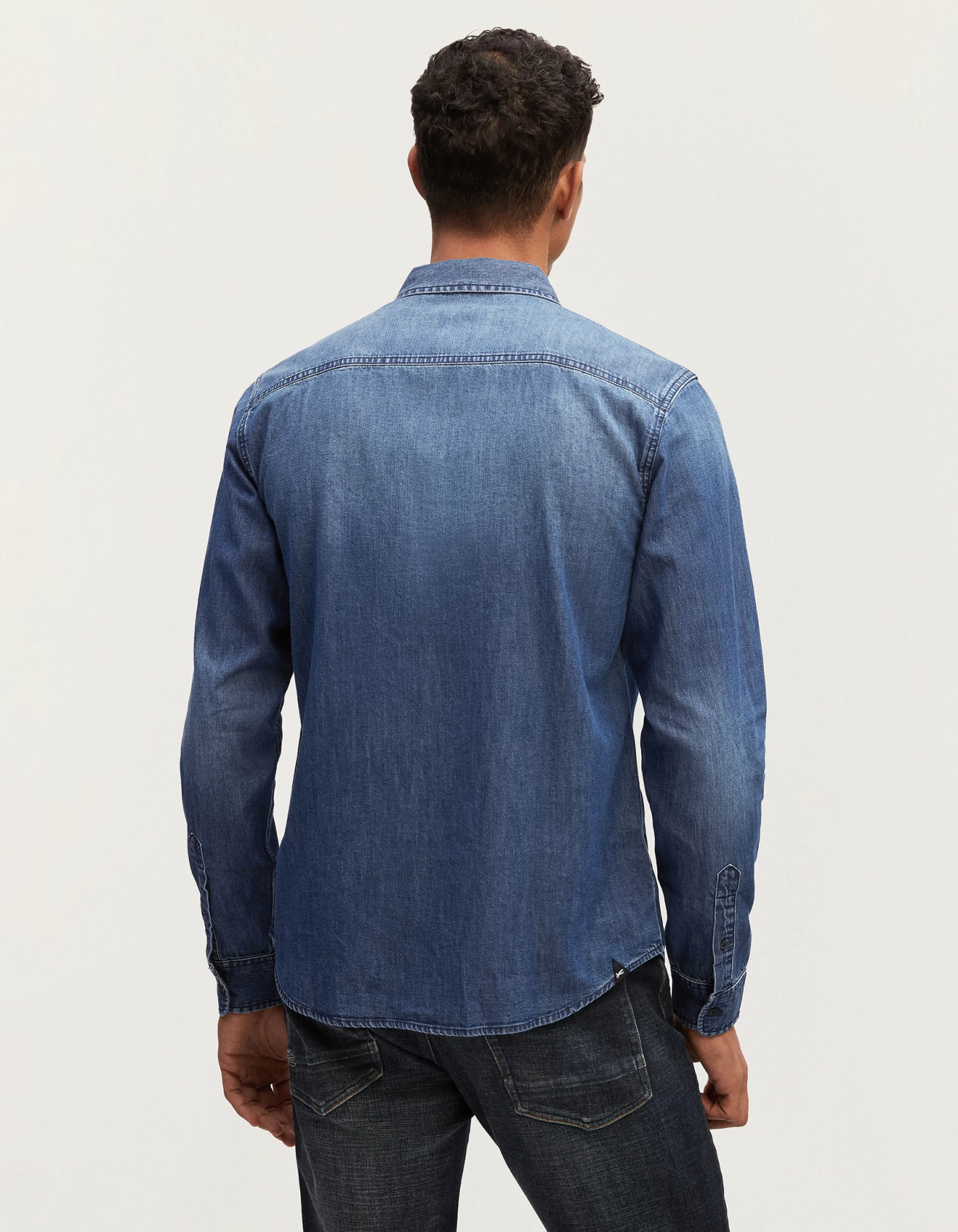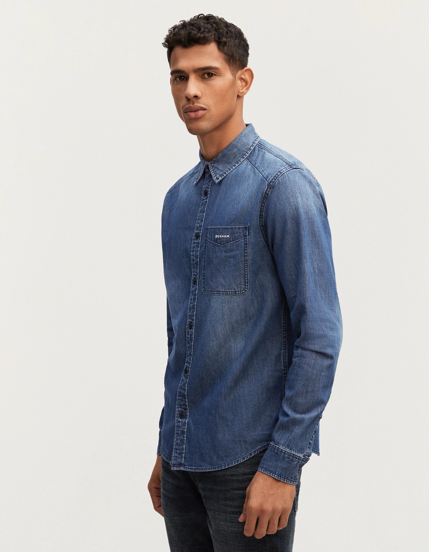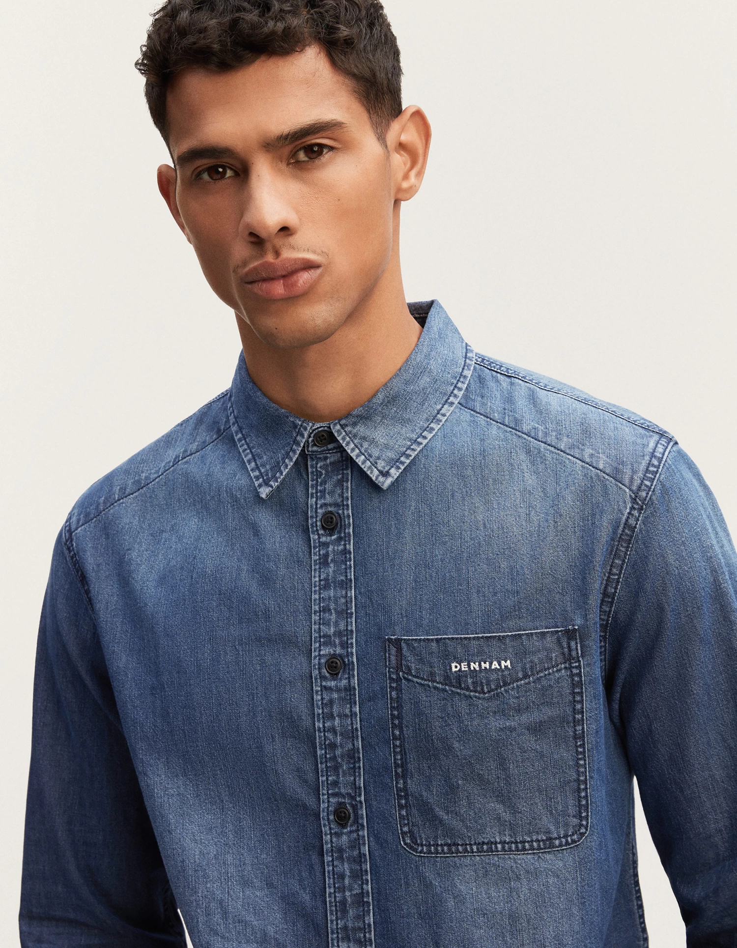 The ROB SHIRT is a regular-fit denim shirt for men. This style is made from our classic denim and features a medium-aged wash for a clean, authentic finish. With a single chest pocket and our brand name embroidered on the front.