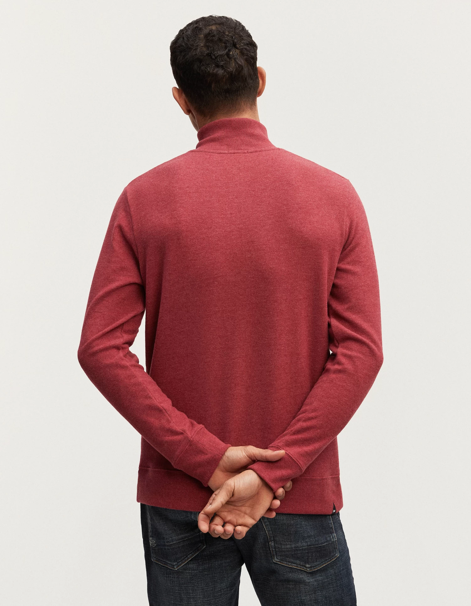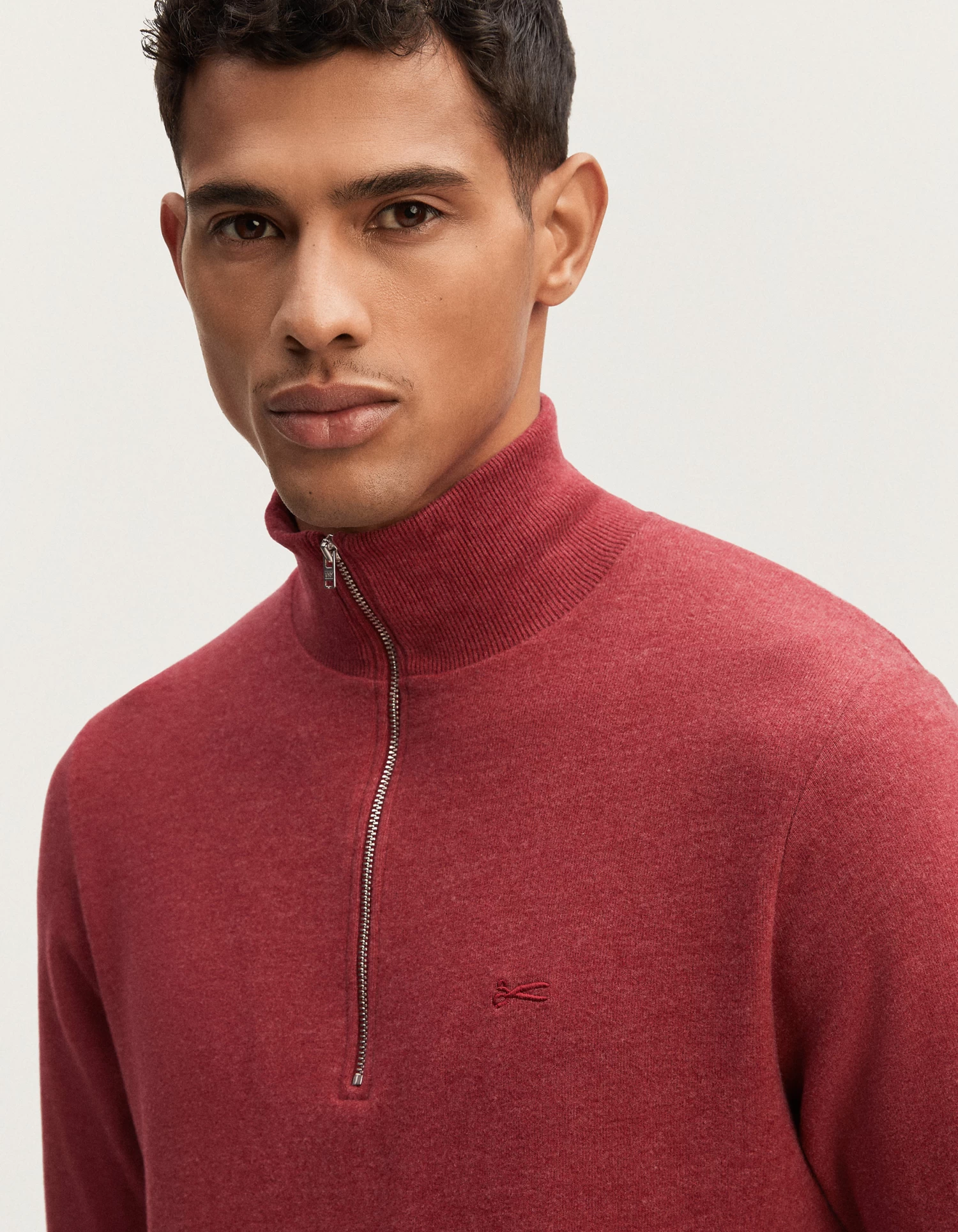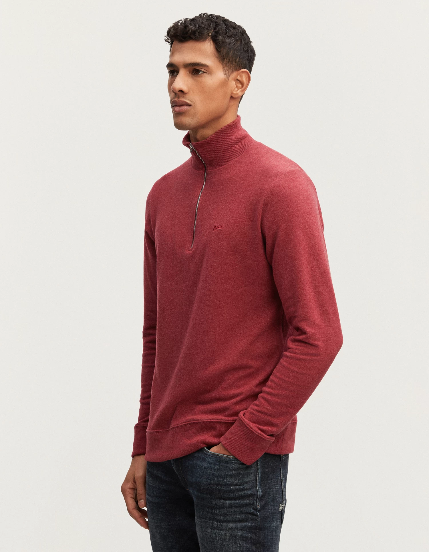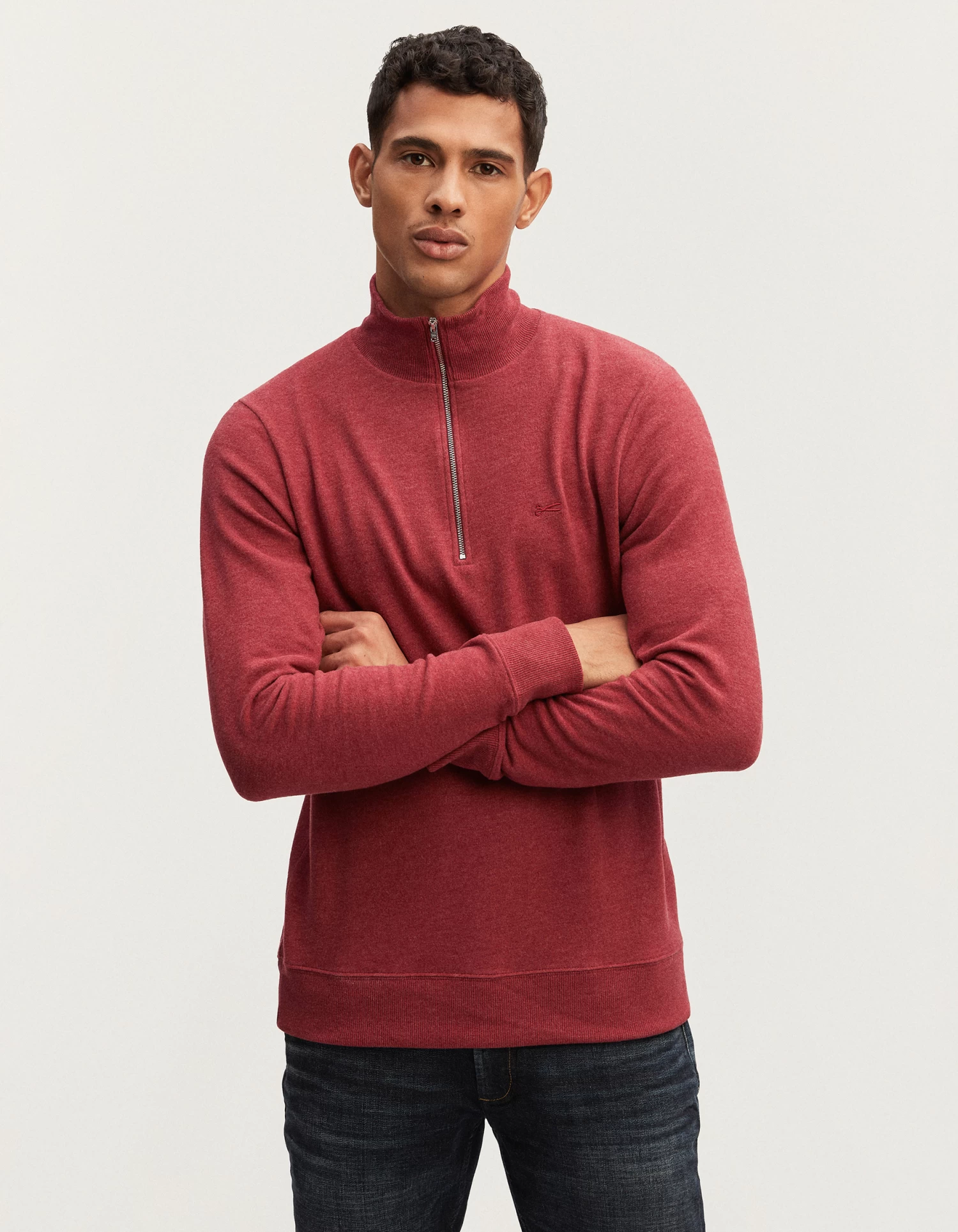 The ROGER HALF ZIP KNIT is a classic sweater with a half-zip neck for men. Made from soft cotton melange jersey, with a zippered collar and ribbed cuffs and hem, this regular fit style features our iconic scissor embroidery on the chest.