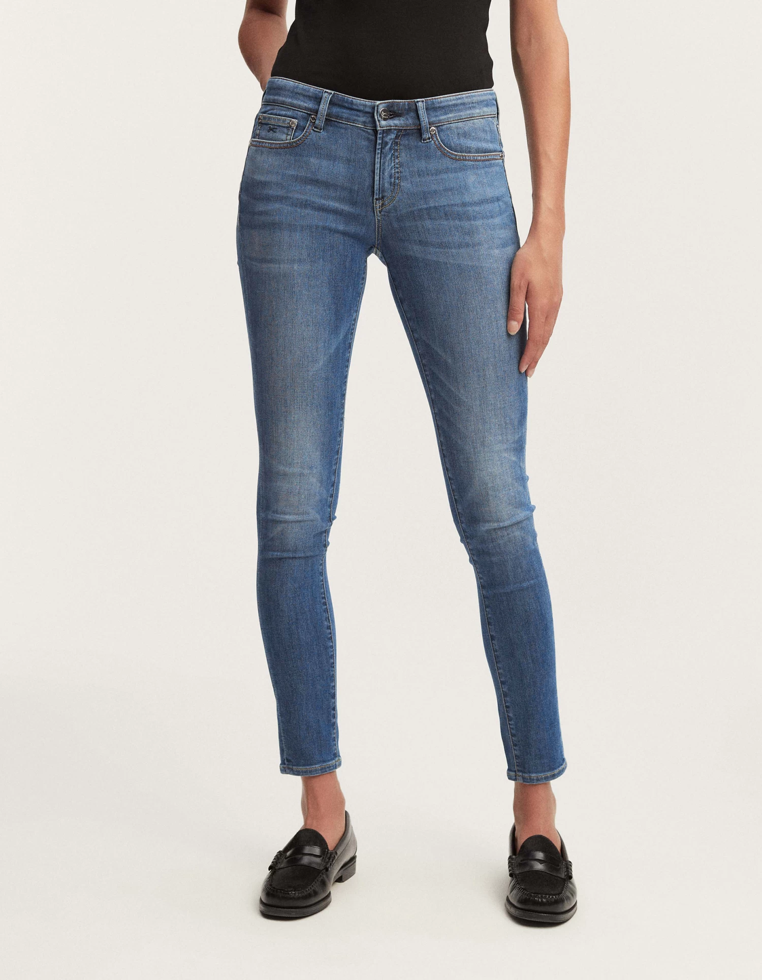 - • Mid-Rise, Super Skinny Fit