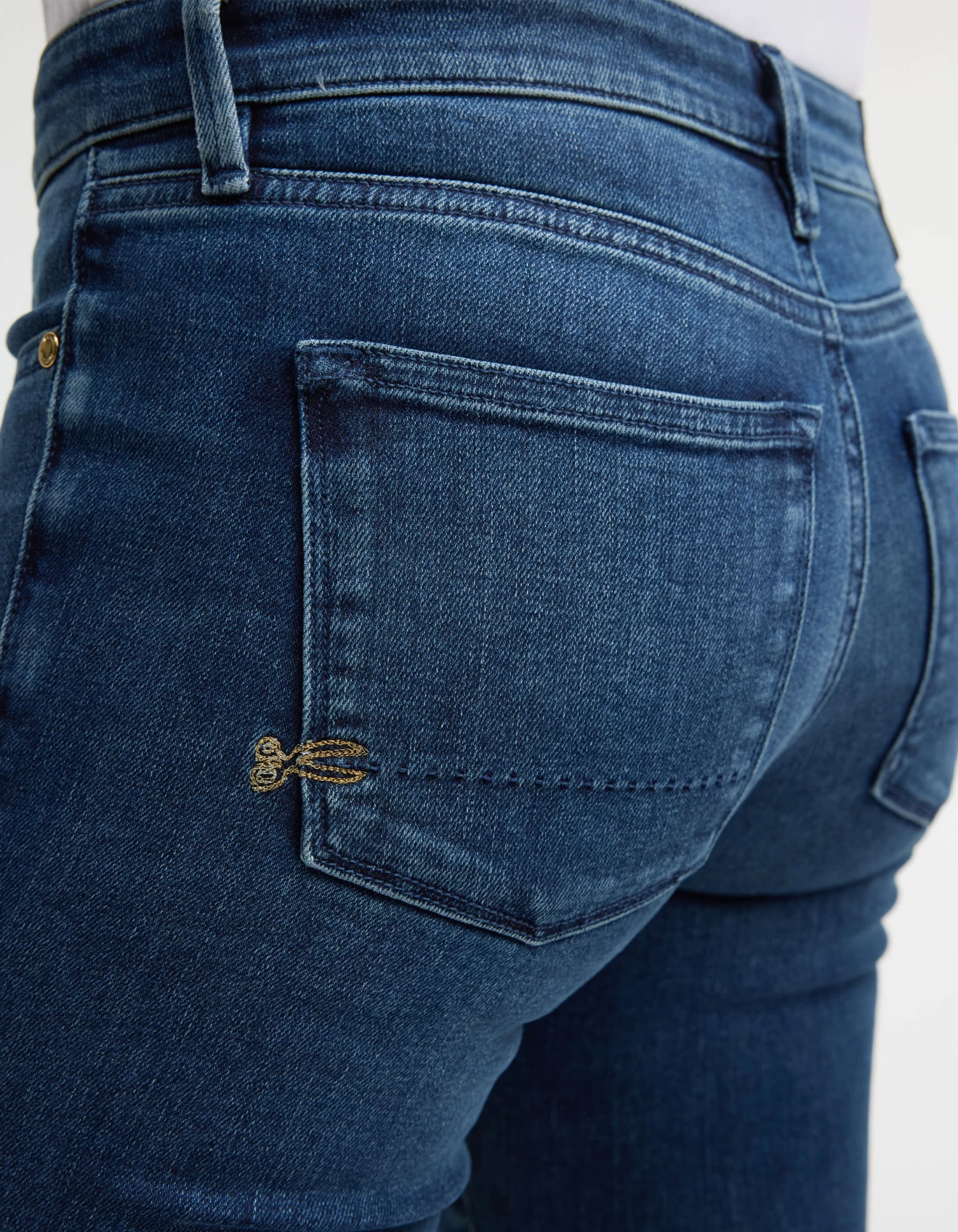 This style of SPRAY Jeans is cut from stretch indigo denim woven by Candiani Denim. These jeans feature a dark-aged stonewashed effect, with a soft worn-in effect.