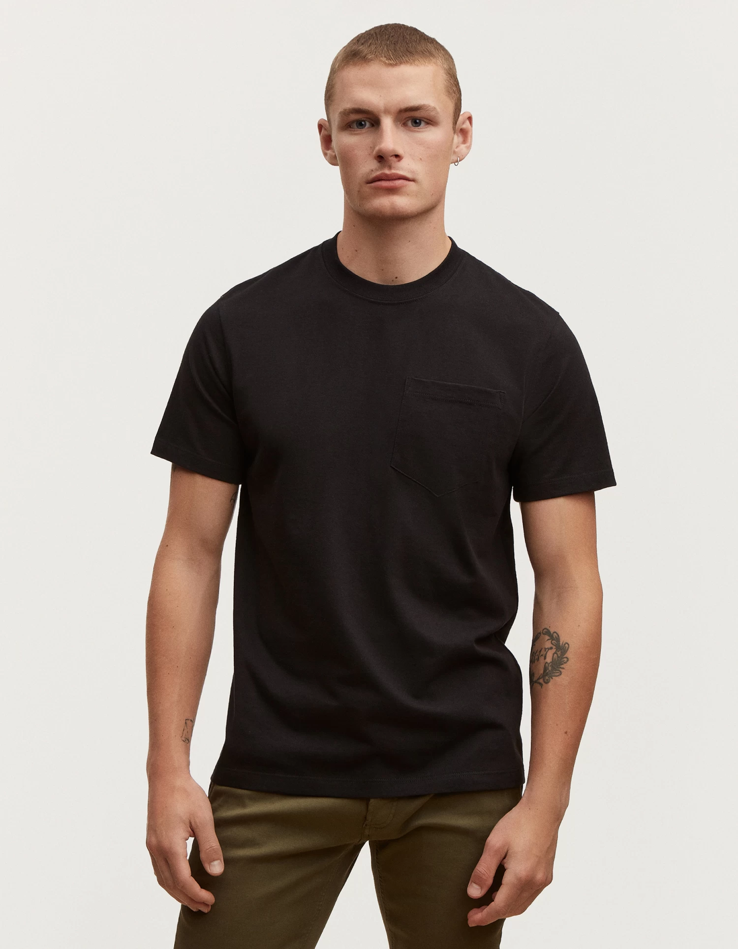 The STANDARD POCKET Tee is part of our latest premium range of essentials for men. Made from the highest quality organic cotton jersey fabric, this regular-fit t-shirt is made in Canada by leading manufacturer Peros. Available in our standard colours with minimal branding and a single chest pocket.